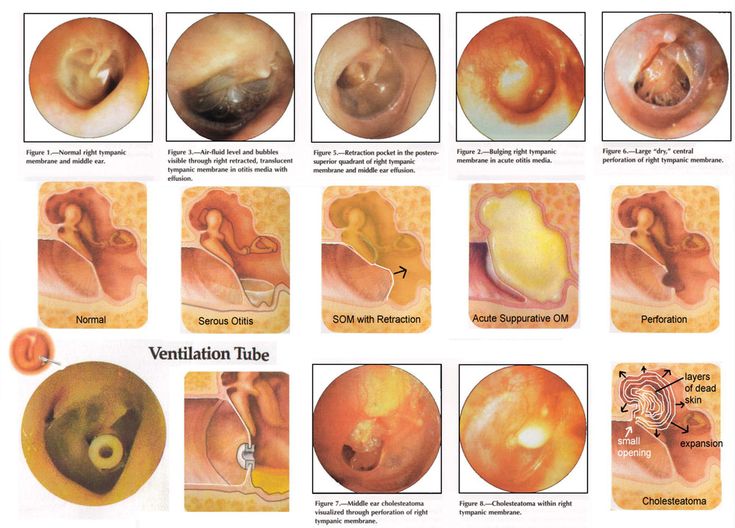 Η μεταβολή της χροιάς του τυμπανικού υμένα, η εξαφάνιση του φωτεινού κώνου και η προβολή του τυμπανικού υμένα παρατηρείται στην οξεία μέση πυώδη ωτίτιδα ή και σε ειδικές περιπτώσεις, όπως το αιματοτύμπανο, παραγαγγλίωμα του μέσω ωτός, όγκους του μέσω ωτός, όπως και όταν σπάνια προβάλλει η έσω σφαγίτιδα στην κοιλότητα του μέσου ωτός.