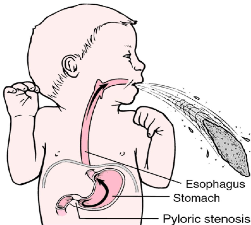 • Επίμονος έμετος (εμετός ο οποίος βγαίνει με φόρα και πετάγεται σε απόσταση από το μωρό).