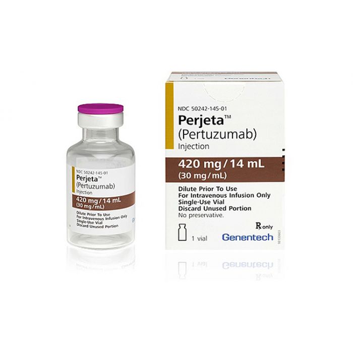 Στις 8 Ιουνίου, 2012, το FDA ενέκρινε την περτουζουμάμπη ένεση (Perjeta™), κατασκευασμένο από την Genentech, Inc,  για χρήση σε συνδυασμό με trastuzumab και docetaxel για τη θεραπεία ασθενών με HER2-θετικό μεταστατικό καρκίνο του μαστού που δεν έχουν λάβει προηγούμενη αντι -HER2 θεραπεία ή χημειοθεραπεία για μεταστατική νόσο.