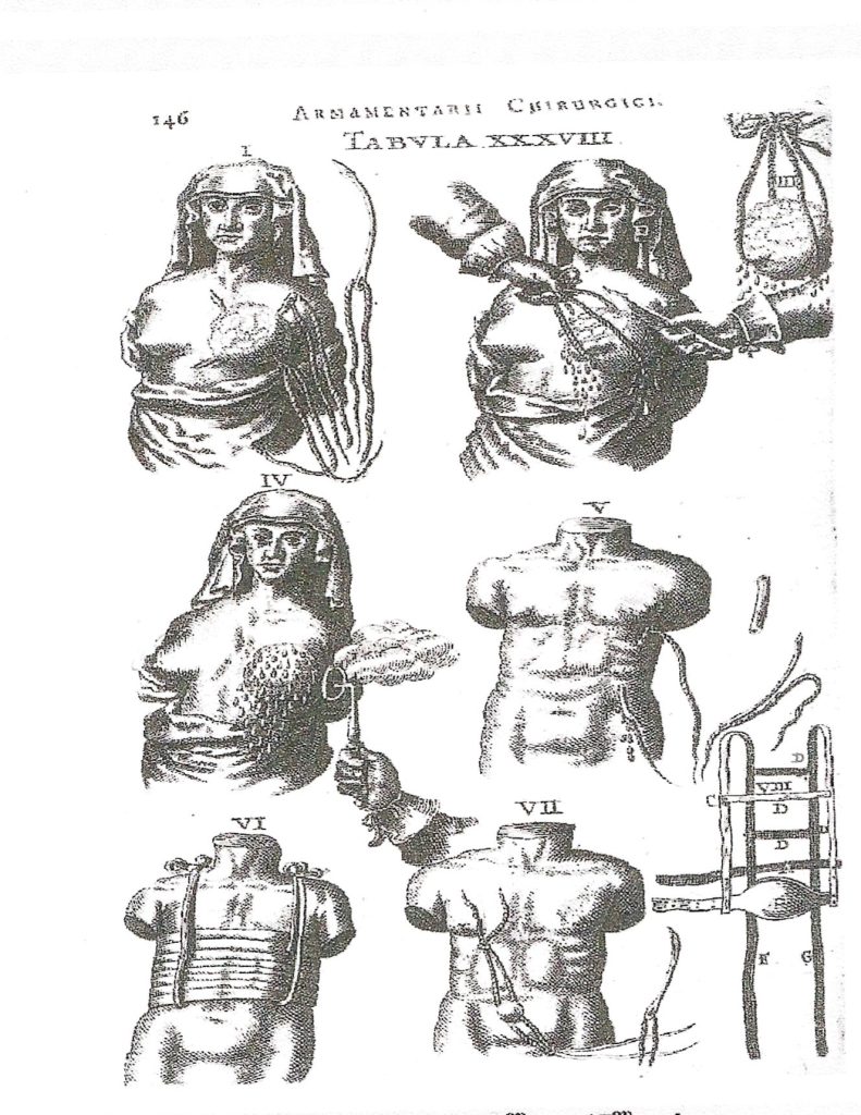 Αναφέρει, ότι οι μαστεκτομές ήταν συνήθεις στην εποχή του και γίνονταν στο σπίτι της ασθενούς. Δε δίνει, πάντως, πολλές πληροφορίες. Χαρακτηριστική είναι η χαλκογραφία του Romeyn de Hooghe ενός Ολλανδού ζωγράφου (1695-1708), που δείχνει πως γινόταν μια μαστεκτομή περίπου το 1667. Αυτή η δουλειά δεν είναι μια ιατρική πραγματεία, αλλά μια συλλογή από εμβλήματα, δηλαδή εικόνες με περιληπτικούς τίτλους σχετιζόμενους με το ηθικό μάθημα της κάθε εικόνας. Έχει τον τίτλο Voorhof der Ziele (Προαύλιο της ψυχής). Το κείμενο, κάτω από την μαστεκτομή, εμπνεύστηκε από την 2η επιστολή στον Τιμόθεο, στην οποία ο Παύλος εκφράζει την αποδοκιμασία στους άθεους ανθρώπους. «Word will eat as does the cancer». Αυτή η επιστολή είναι το μόνο σημείο στη Βίβλο, στην οποία υπάρχει αναφορά για τον καρκίνο. Το κακό σχετίζεται με την αύξηση του μεγέθους του κακοήθους όγκου, σε ένα φυσικό σώμα. Και όπως ένας καρκίνος μπορεί μόνο να θεραπευτεί με την έγκαιρη εφαρμογή ενός κοφτερού μαχαιριού, έτσι και οι αμαρτωλές ψυχές πρέπει να επανέλθουν στον ίσιο δρόμο με επώδυνη διόρθωση. Αυτό το είδος της μεταφορικής γλώσσας είχε ήδη χρησιμοποιηθεί από τον Έλληνα Πατέρα της Εκκλησίας Ιωάννη Χρυσόστομο, Πατριάρχη της Κωνσταντινούπολης (345-407 μ.Χ.).