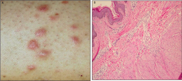 Πολλαπλά δερματικά λειομυώματα μπορεί να εμφανιστούν στο πρόσωπο, τον κορμό ή στα άκρα.