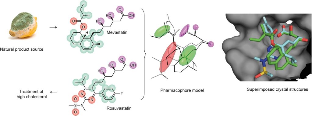 Ανευρίσκεται στη φυσική πηγή ένα φάρμακο οδηγός. Μετά τη διαπίστωση του μέρους του φαρμάκου που είναι υπεύθυνο για τη δράση του, αφαιρούνται ή προστίθενται πλευρικές αλυσίδες με στόχο την απόκτηση του επιθυμητού προφίλ αποτελεσματικότητας και ασφάλειας. Οι συνολικές αλλαγές στο μόριο είναι τόσο εκτεταμένες που απαιτούνται σοβαρές γνώσεις φαρμακευτικής χημείας για να διακριθεί η ομοιότητα.  Η φυσική πηγή δεν καλλιεργείται για την απόδοση του ενεργού μέρους του φαρμακοφόρου.