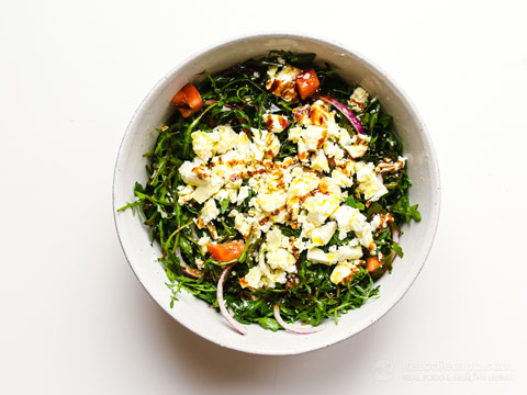 -Για ωραία εμφάνιση τη σερβίρετε, όταν ψηθεί πάνω σε φύλλα ρόκας.