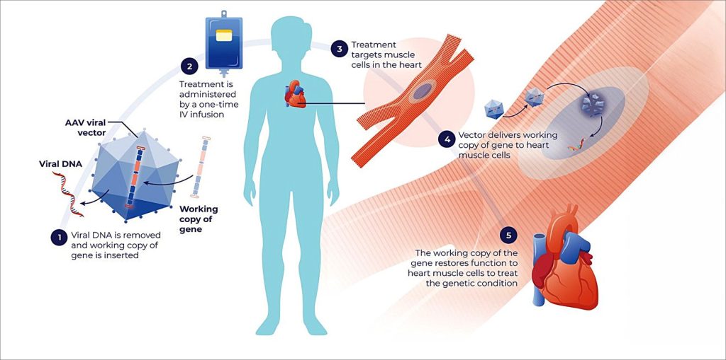 Στις κλινικές μελέτες που συνολικά συμμετέχουν συνολικά 224 ασθενείς στους οποίους θα χορηγηθεί ένα ζωντανός ιός (αδενοϊός) που σα «δούρειος ίππος» θα μεταφέρει στην καρδιά των ασθενών το αντίγραφο ενός γονιδίου που ονομάζεται SERCA2a/Sarco(endo)plasmic Reticulum Calcium ATPase/Σαρκο(ενδοπλασματικό δίκτυο ασβεστίου ATPάσης). Αυτό, φέρεται να κωδικοποιεί μία πρωτεΐνη η οποία ρυθμίζει τη συστολή και τη διαστολή της καρδιάς, κατά την άντληση αίματος.