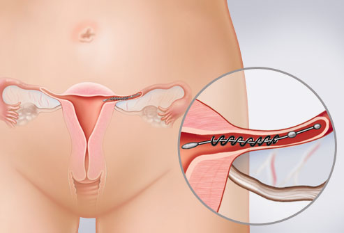 Μια νεώτερη διαδικασία καθιστά δυνατόν να κλείσουν οι σάλπιγγες χωρίς χειρουργική επέμβαση. Τα μικρά εμφυτεύματα από μέταλλο ή από σιλικόνη τοποθετούνται μέσα σε κάθε σάλπιγγα. Ο ουλώδης ιστός μεγαλώνει τελικά γύρω από τα εμφυτεύματα και μπλοκάρουν τις σάλπιγγες. Μόλις η ακτινογραφία επιβεβαιώσει ότι οι σάλπιγγες έχουν κλείσει καμιά άλλη μέθοδος αντισύλληψης δεν είναι απαραίτητη. Είναι μόνιμη, δεν απαιτεί χειρουργική επέμβαση και είναι σχεδόν 100% αποτελεσματική. Θέλει λίγους μήνες για να γίνει αποτελεσματική. Μπορεί να αυξήσει τον κίνδυνο πυελικών λοιμώξεων και είναι μη αναστρέψιμη.