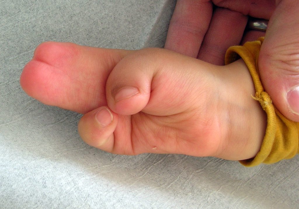 Τύπος Ι: Είναι η πιο συχνή και λιγότερο, σοβαρή μορφή της παραμόρφωσης. Ο αντίχειρας δείχνει ακτινική απόκλιση, αλλά διαχωρίζεται από το δείκτη. Ο δείκτης, ο μακρός και ο παράμεσος συντήκονται μαζί, στις άπω μεσοφαλαγγικές αρθρώσεις και σχηματίζουν μία επίπεδη παλάμη. Κατά τη διάρκεια του εμβρυϊκού σταδίου, η σύντηξη δεν έχει καμία επίδραση στη διαμήκη ανάπτυξη αυτών των δακτύλων, έτσι ώστε, να έχουν ένα κανονικό μήκος. Στο τέταρτο μεσοδακτύλιο διάστημα βλέπουμε, πάντα, απλές συνδακτυλίες, πλήρεις ή όχι.