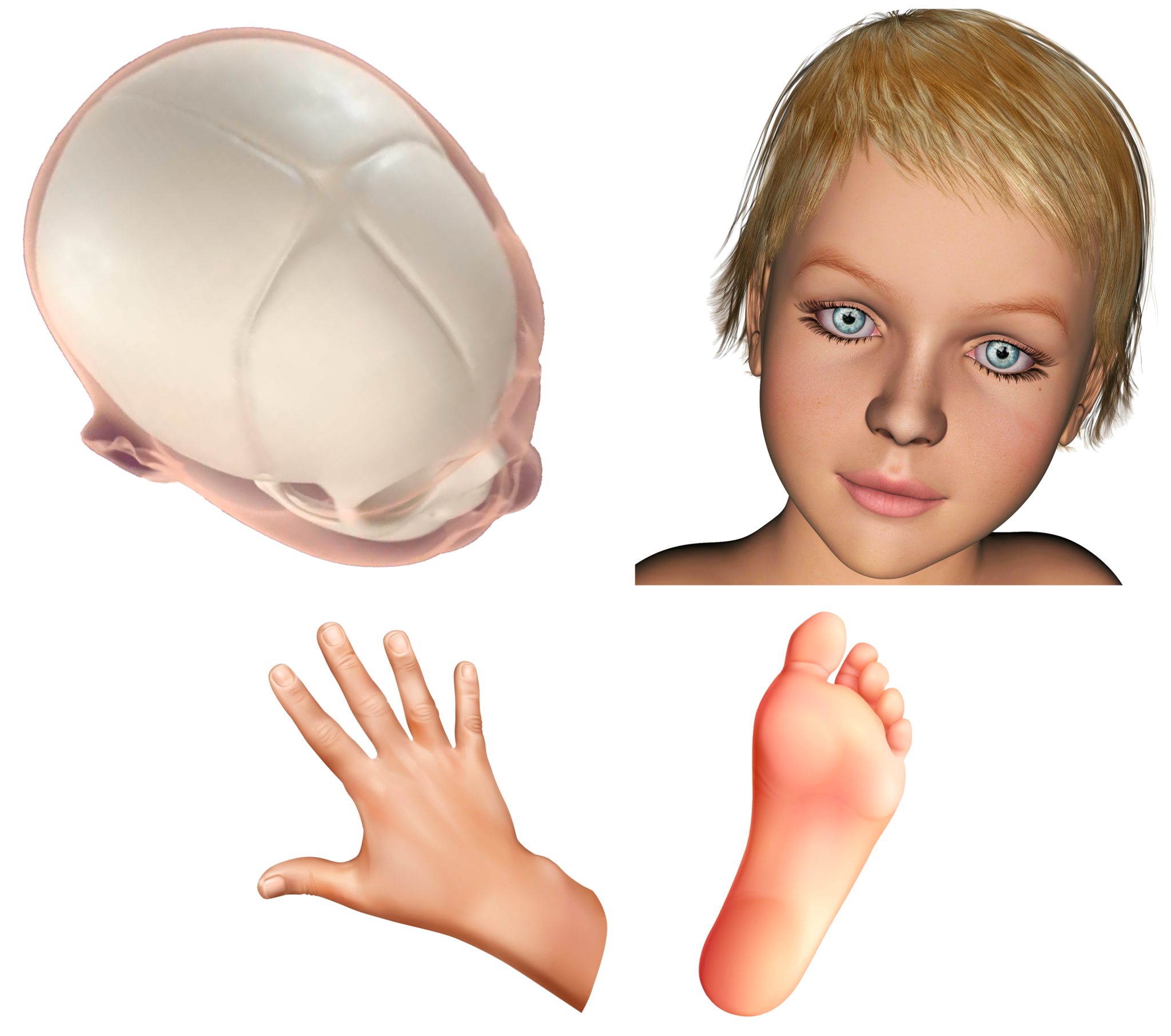 Τα κρανιακά οστά επηρεάζονται, επίσης, όπως στο σύνδρομο Crouzon (το σύνδρομο Crouzon χαρακτηριζεται απο πολλαπλές πρόωρες συνοστεώσεις των ραφών του κρανίου και του προσώπου) και το σύνδρομο Pfeiffer (το σύνδρομο Pfeiffer είναι μια σπάνια γενετική πάθηση που επηρεάζει κυρίως το κρανίο και τα οστά του προσώπου). Η κρανιοσυνοστέωση συμβαίνει, όταν το εμβρυϊκό κρανίο και τα οστά του προσώπου συνοστεώνονται πολύ νωρίς στη μήτρα, διαταράσσοντας τη φυσιολογική ανάπτυξη των οστών. Η σύντηξη των ραφών οδηγεί σε διαφορετικά πρότυπα ανάπτυξης, στο κρανίο.