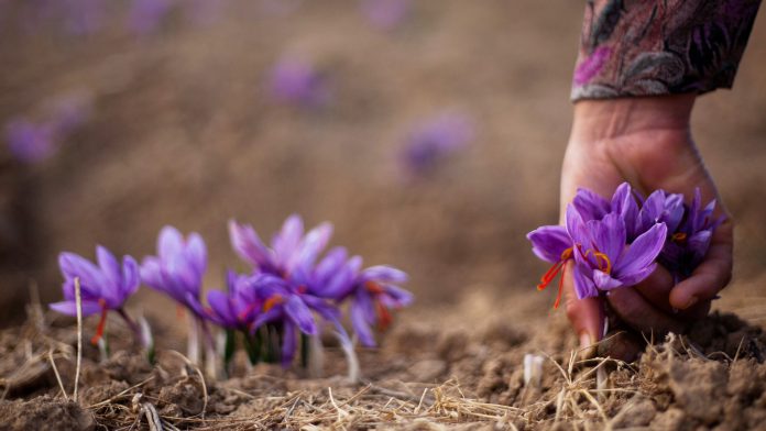 Τα φύλλα, οι ρίζες, τα άνθη και τα κόκκινα στίγματά τους. Τα στίγματα είναι το σημαντικότερο. Χρειάζονται μεγάλη ποσότητα άνθη του για να παραχθούν στίγματα ενός κιλού, και για να είναι ποιοτικός ο κρόκος πρέπει να μαζευτεί με το χέρι.