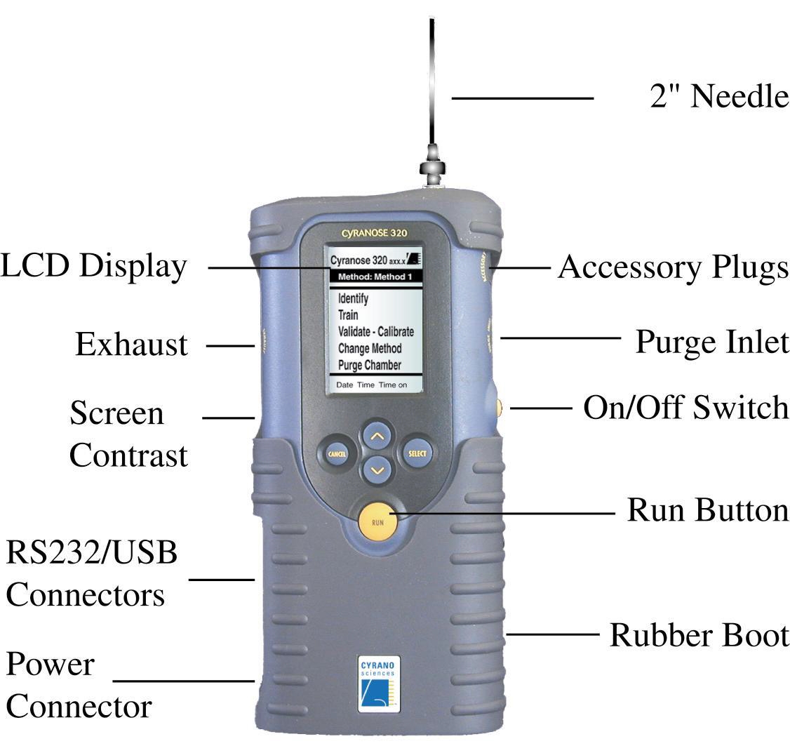 Η ηλεκτρονική μύτη περιλαμβάνει τρία βασικά μέρη: ένα σύστημα παροχής δείγματος, ένα σύστημα ανίχνευσης και ένα υπολογιστικό σύστημα.