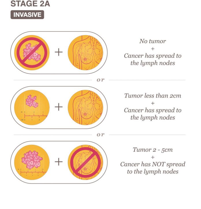 Στάδιο 2 σημαίνει ότι ο καρκίνος του μαστού αυξάνεται συνεχώς, αλλά εξακολουθεί να εντοπίζεται στο στήθος ή η ανάπτυξη έχει επεκταθεί μόνο στους κοντινούς λεμφαδένες.