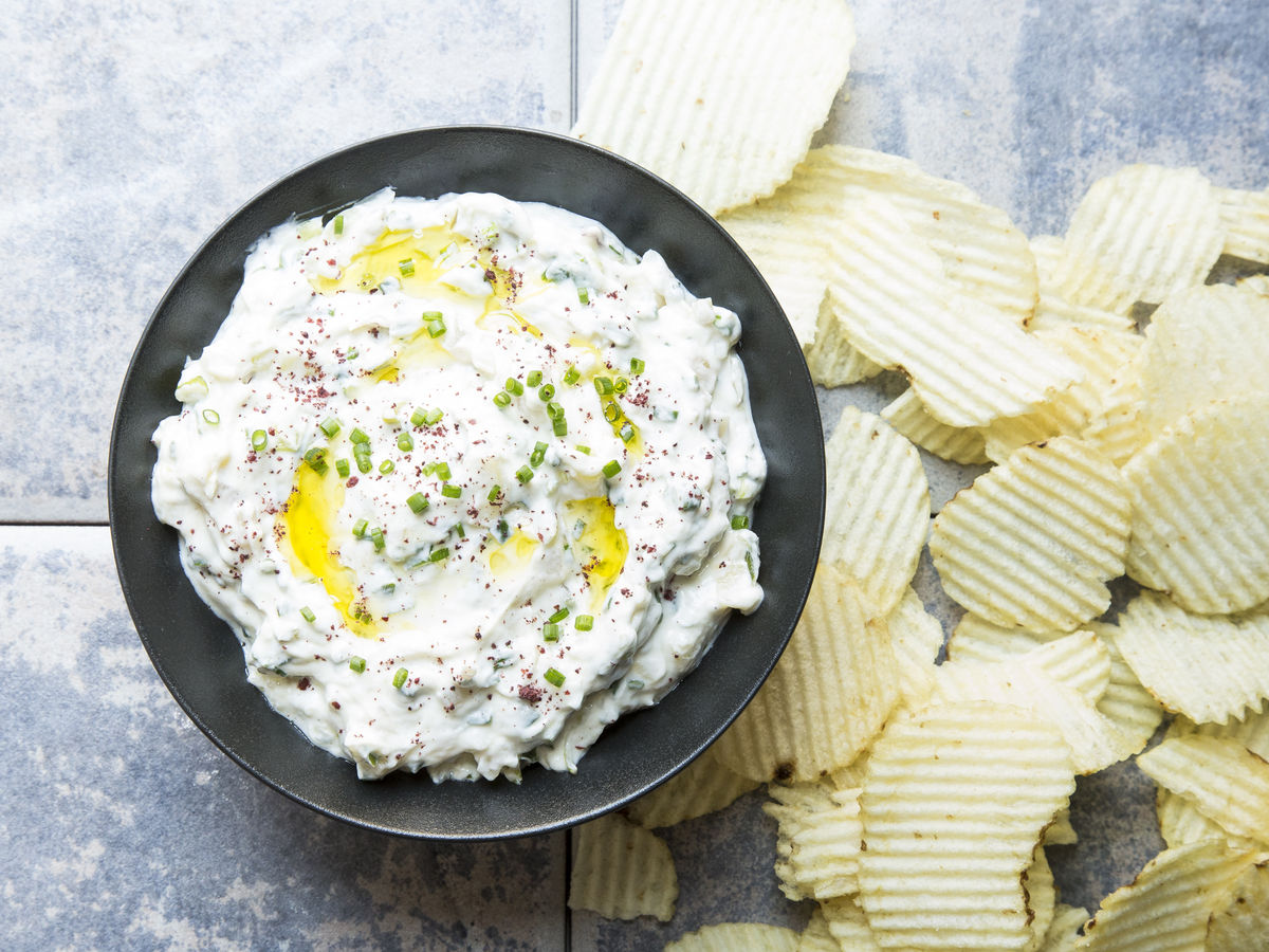 Chips με δροσερό ντιπ γιαουρτιού