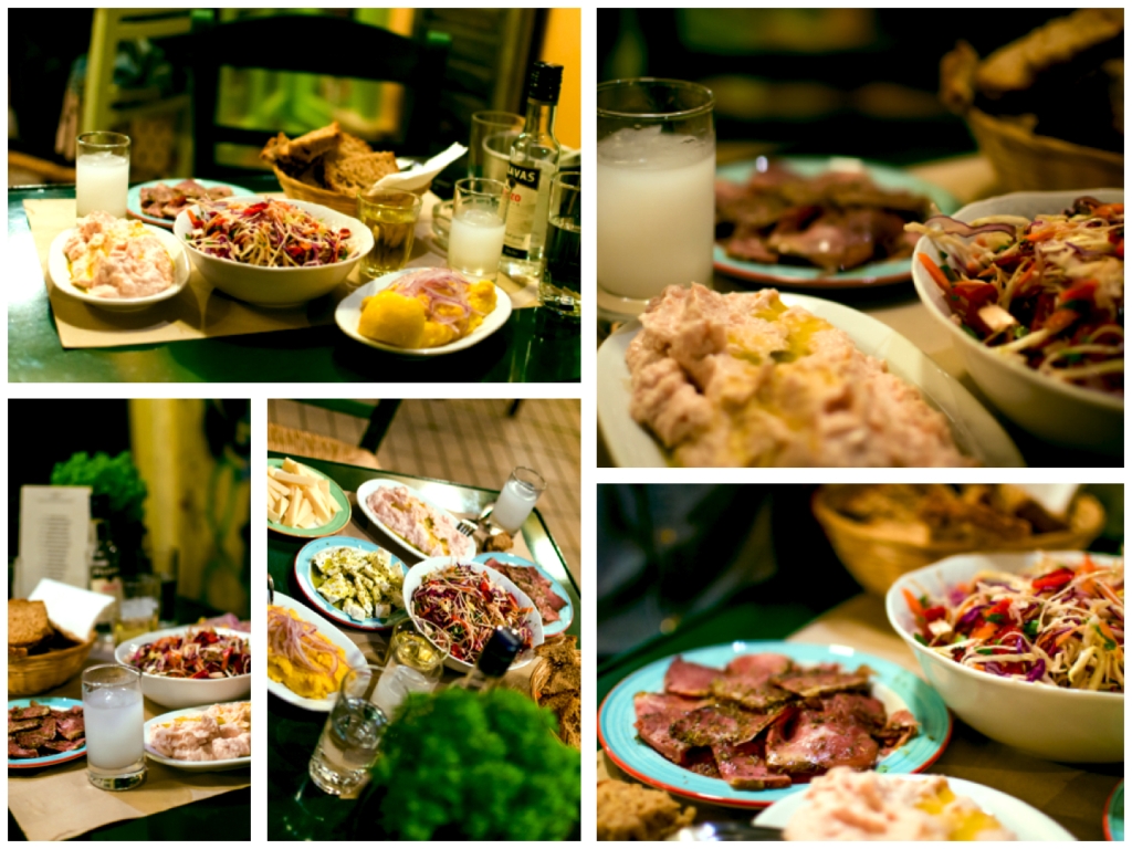 Το σαλάμι αέρος σε ροδέλες και τα βρασμένα πηχτά αυγά με ανεπεξέργαστο θαλασσινό αλάτι, ξύδι και φρεσκοτριμμένο πιπέρι, η τηγανιά, που είναι τεμαχισμένο κρέας χοιρινό σε μικρά κομμάτια, τηγανισμένο στο λάδι, με λεμόνι, ρίγανη και αλατοπίπερο, ο καβουρμάς από κομμάτια ανάμεικτου κρέατος βρασμένα σε μεγάλα κομμάτια με το λίπος και συντηρείται στο ψυγείο και σερβίρεται σε μικρές ποσότητες κρύος ή ζεστός με αυγό, ο παστουρμάς από πλευρά ζώου, όπως μοσχάρι, αρνί, καμήλα, χοίρος, κατσίκα ή βούβαλος. Το κρέας αφυδατώνεται και ψήνεται με χοντρό αλάτι υπό πίεση και στο τελευταίο στάδιο καλύπτεται με τσιμένι, που είναι μια κόκκινη αλοιφή που αποτελείται από κύμινο, τριγωνέλλα, σκόρδο και πάπρικα και στεγνώνει στον αέρα κρεμασμένο, στον ήλιο, περίπου για 12 ημέρς ή καπνίζεται και λαμβάνει ένα κόκκινο χρώμα.