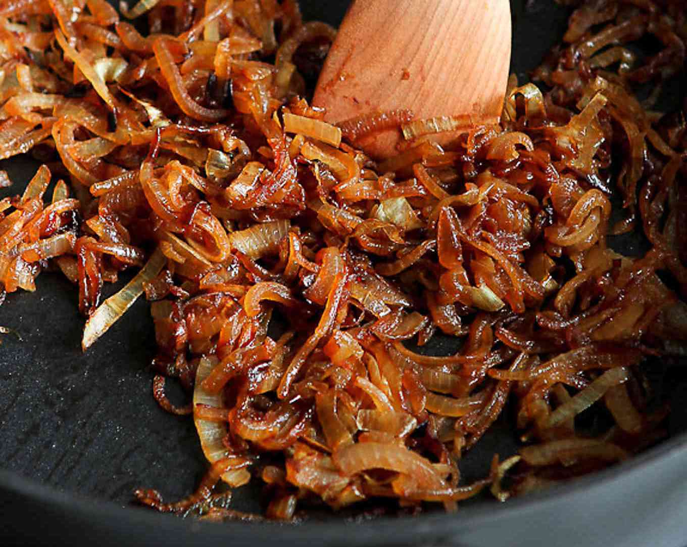 Συνεχίζετε να μαγειρεύετε ανακατεύοντας όλο και πιο συχνά, μέχρι τα κρεμμύδια να πάρουν ωραίο χρώμα, για 20 λεπτά ακόμα.