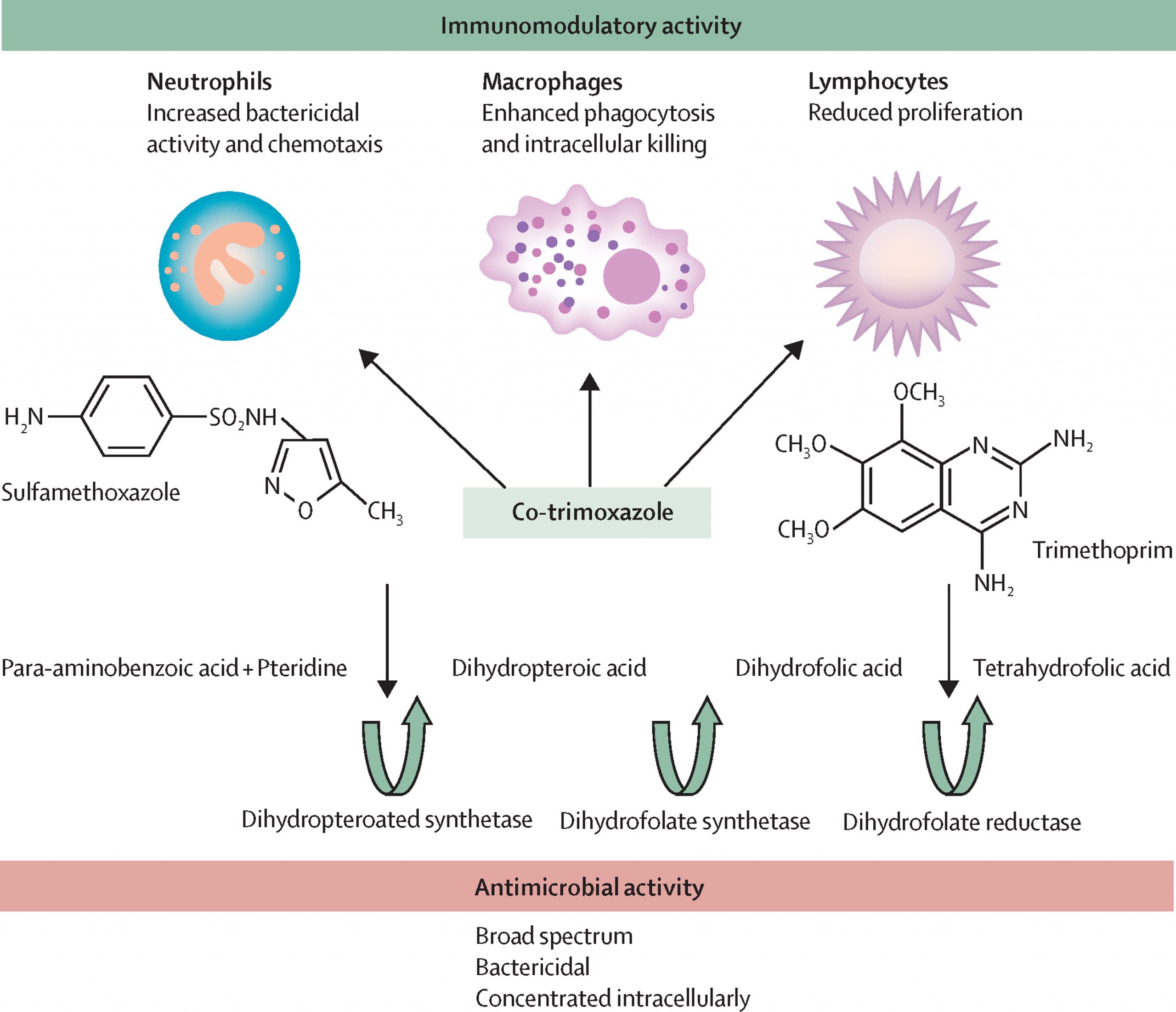 Η TMP / SMX οδηγεί γενικά σε βακτηριακό θάνατο. Δρα εμποδίζοντας την παραγωγή και χρήση φυλλικού οξέος από τους μικροοργανισμούς.