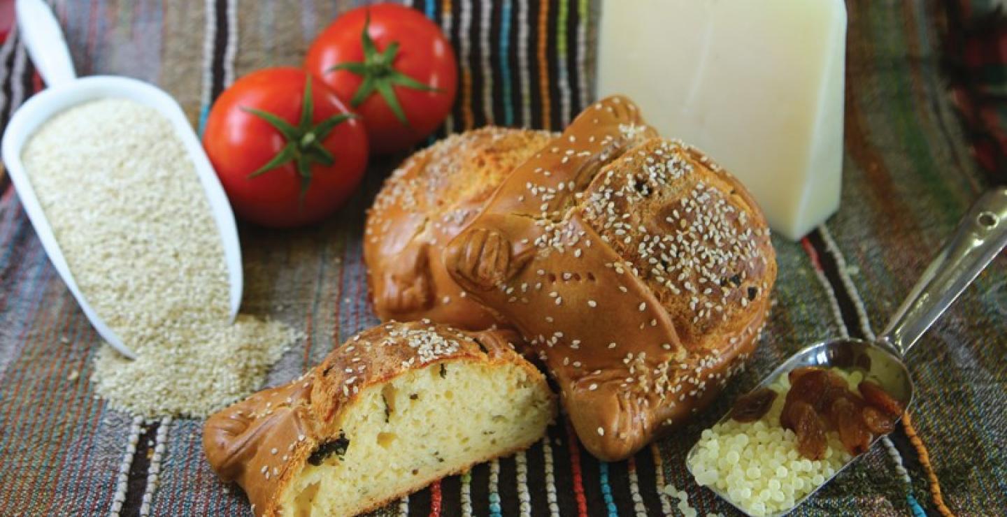3. Για να φτιάξετε τη ζύμη, τοποθετήστε το αλεύρι, τη μαστίχα, το μαχλέπι, το μείγμα ζύμης, το βούτυρο και το αλάτι σε ένα μεγάλο μπολ. Προσθέτοντας το γάλα λίγο τη φορά, ζυμώνετε τα υλικά μέχρι να μαλακώσουν αλλά όχι να είναι κολλώδη.